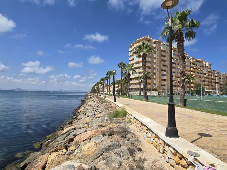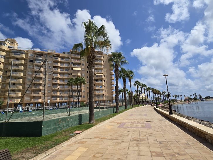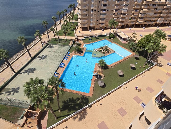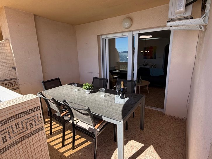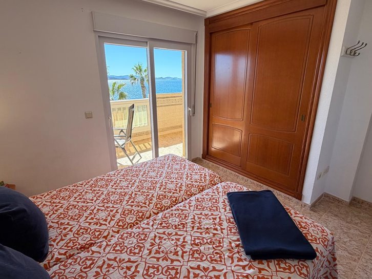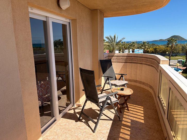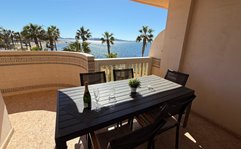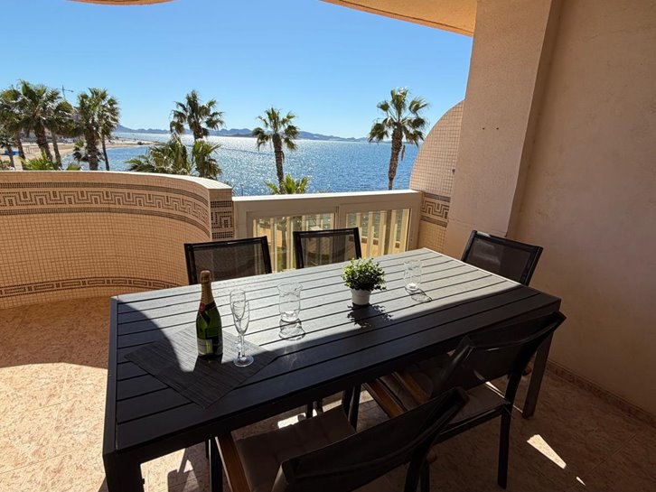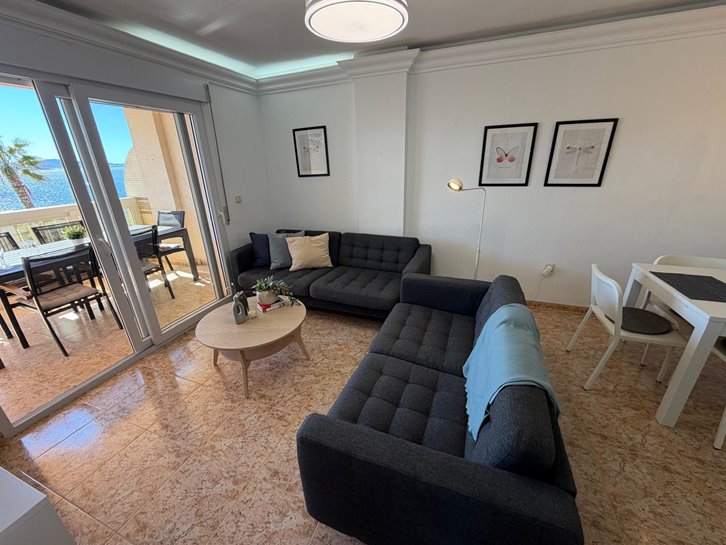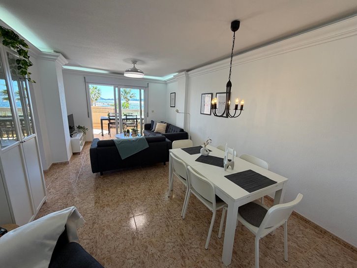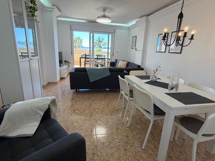 Beautiful front-facing apartment with excellent views of the Mar Menor and the Mediterranean Sea. It features an entrance hall, three bedrooms, two bathrooms, a separate kitchen with a utility room, a living-dining room, and two spacious terraces overlooking both seas. Bright and airy, it is fully furnished and equipped, with underfloor heating and air conditioning. The complex offers a communal lounge, swimming pool, and sports court. Located in a vibrant commercial area and next to the Tomas Maestre Marina.