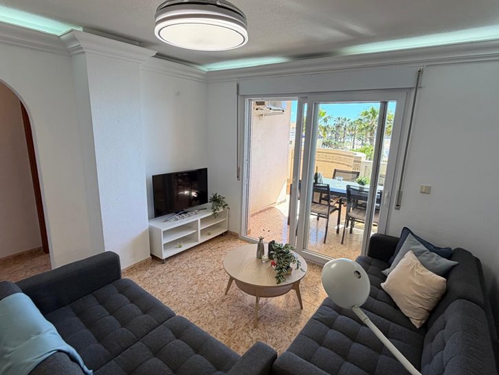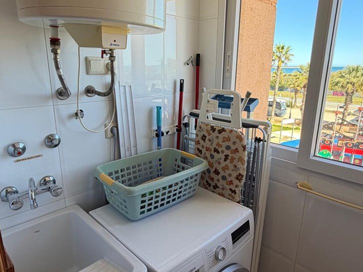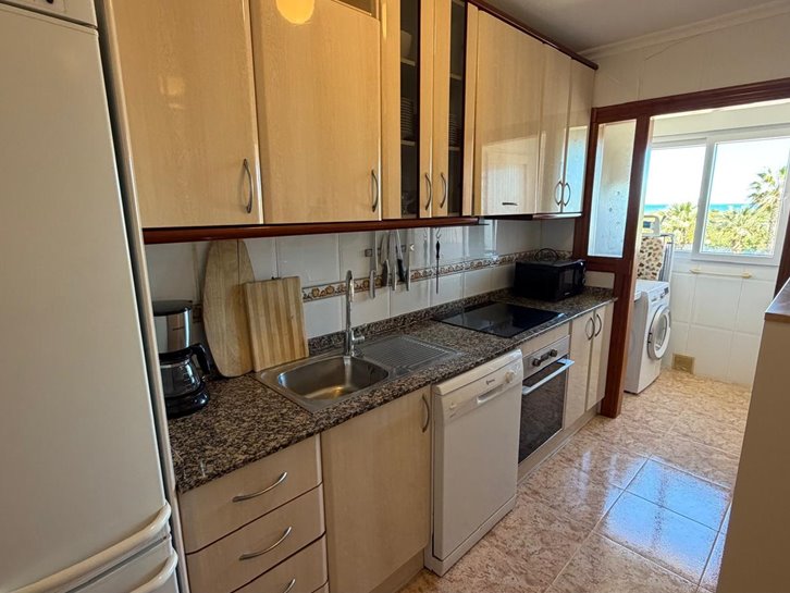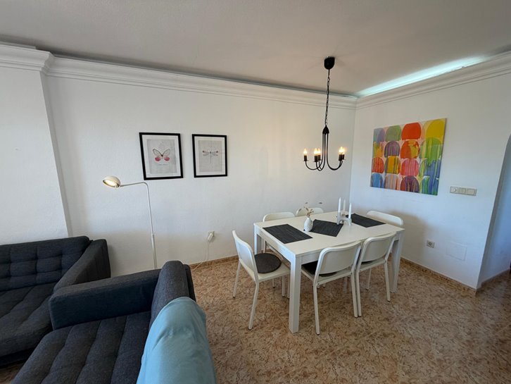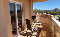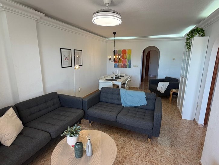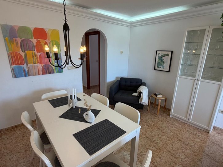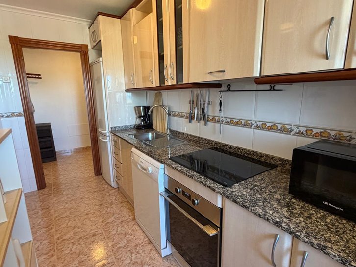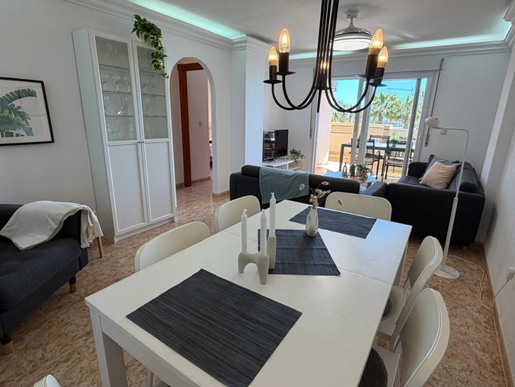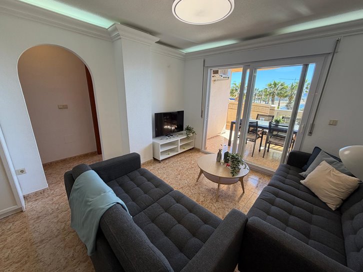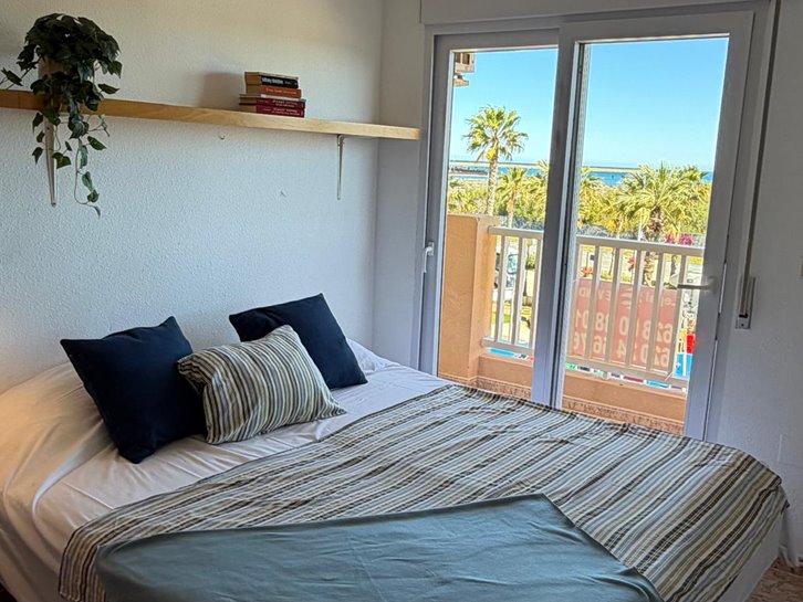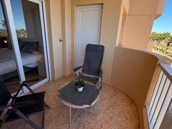 Beautiful front-facing apartment with excellent views of the Mar Menor and the Mediterranean Sea. It features an entrance hall, three bedrooms, two bathrooms, a separate kitchen with a utility room, a living-dining room, and two spacious terraces overlooking both seas. Bright and airy, it is fully furnished and equipped, with underfloor heating and air conditioning. The complex offers a communal lounge, swimming pool, and sports court. Located in a vibrant commercial area and next to the Tomas Maestre Marina.