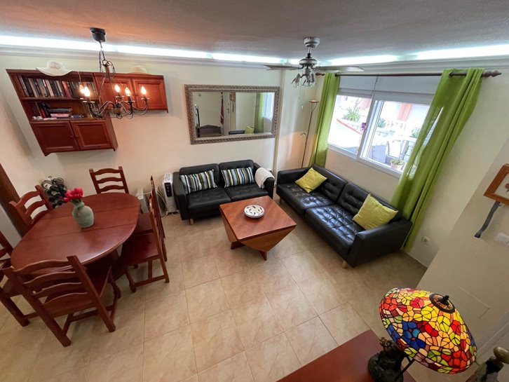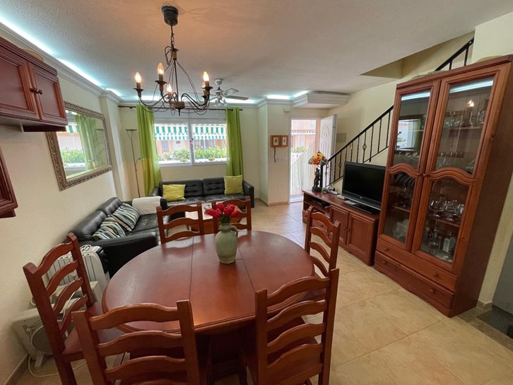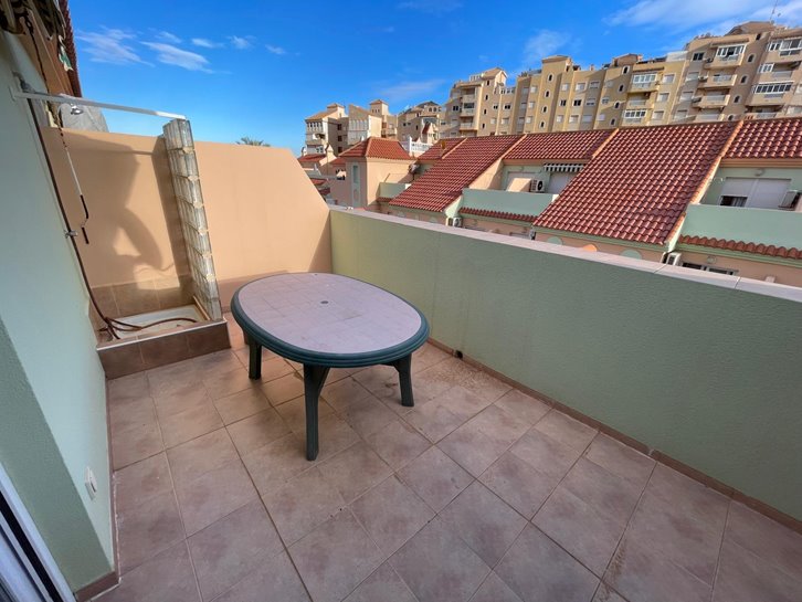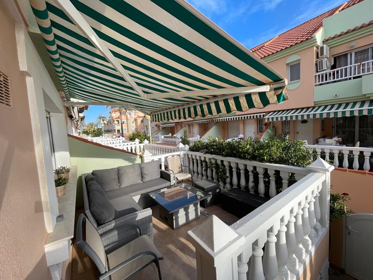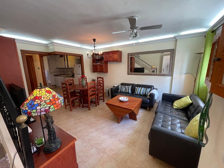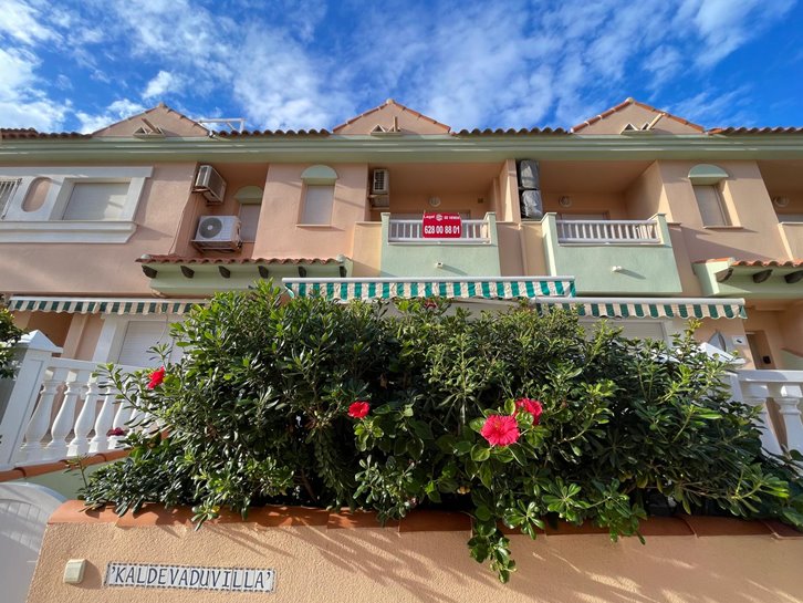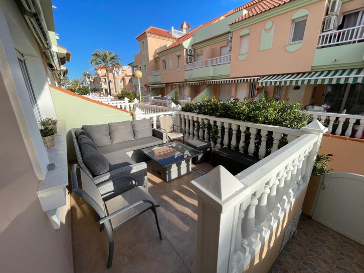 Magnificent, renovated duplex in Villas de Frente Marino, located next to the seafront promenade. It features 4 bedrooms, 3 bathrooms, a living-dining room, an open-plan kitchen with a utility room, and 3 terraces. Sold fully furnished and equipped, it includes air conditioning, ceiling fans, and underfloor heating. The complex offers a communal swimming pool and garden. A spacious garage with direct access to the property is also included.