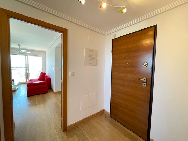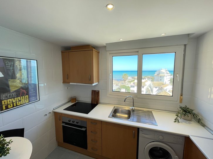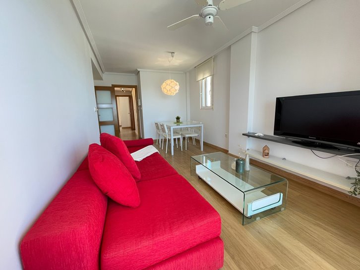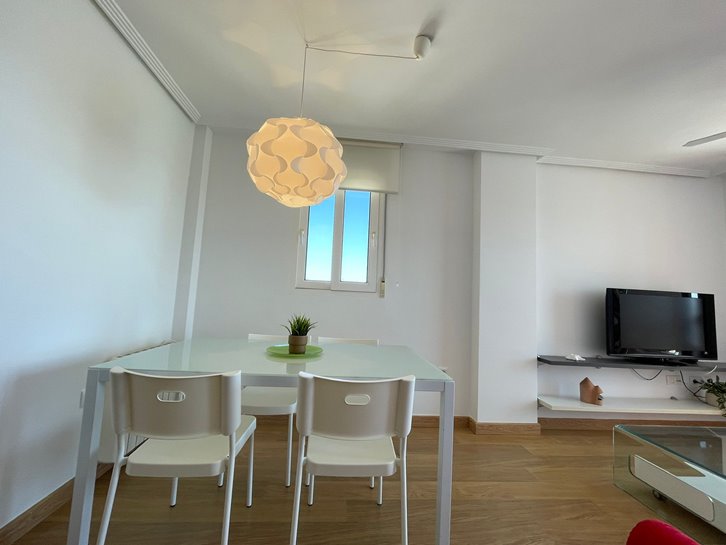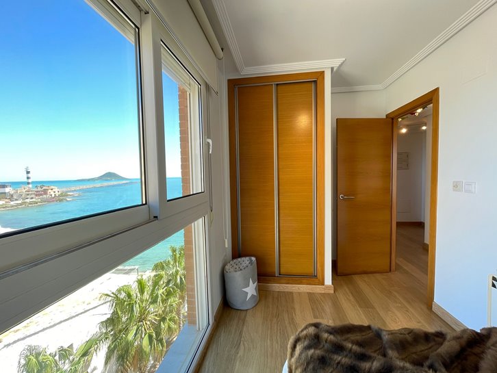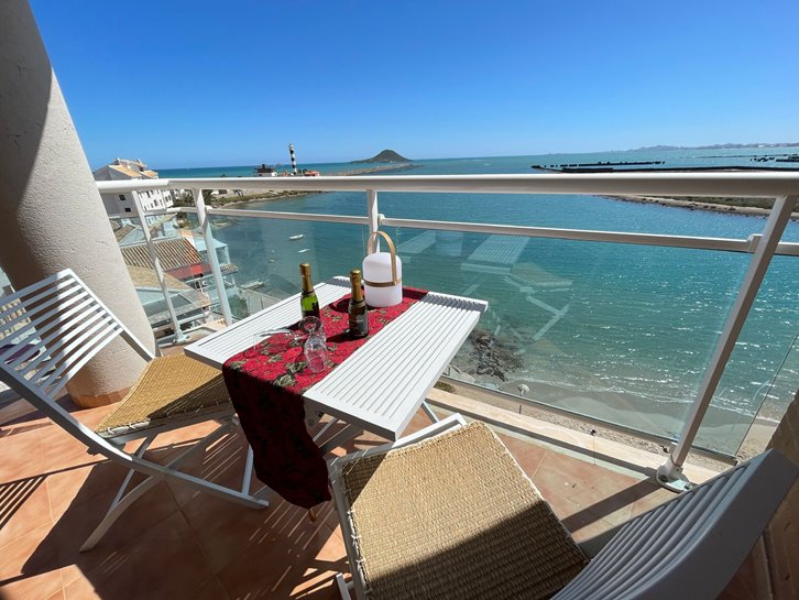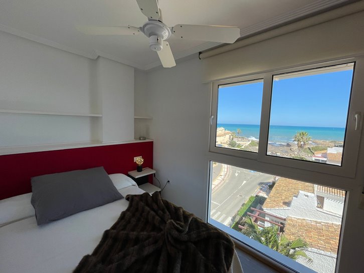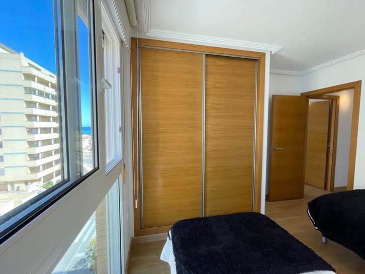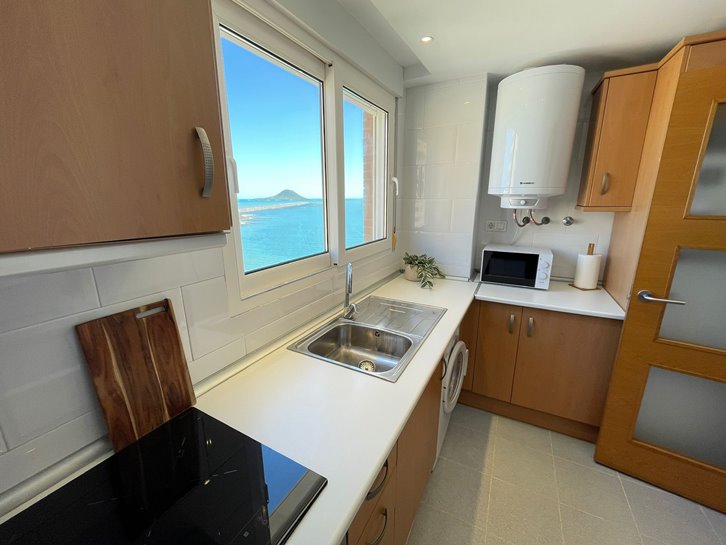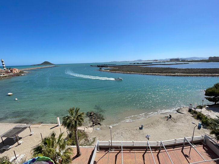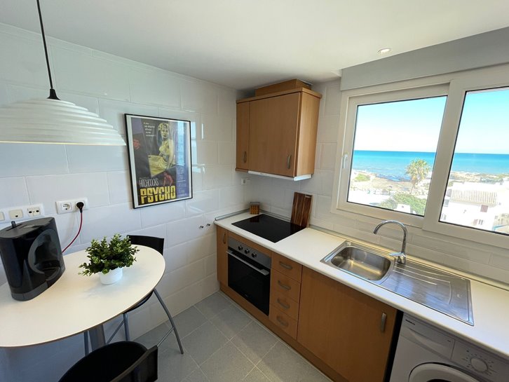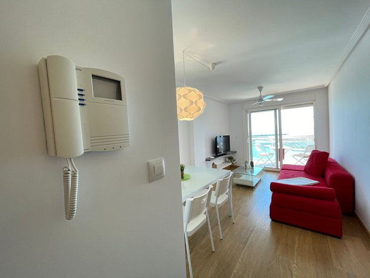 Magnificent, fully renovated apartment with excellent views of both the Mediterranean Sea, the lighthouse, and the El Estacio boat channel. It comprises two bedrooms, one bathroom, a separate kitchen, a living/dining room, and a front terrace. It has cross ventilation, is completely exterior, making it very cool and bright. It is sold fully furnished (except for the television), equipped, and with radiator heating. There is a beautiful beach by the canal just down from the block, and the wide Mediterranean beaches are just across the street. Surface parking space No. 5-B.