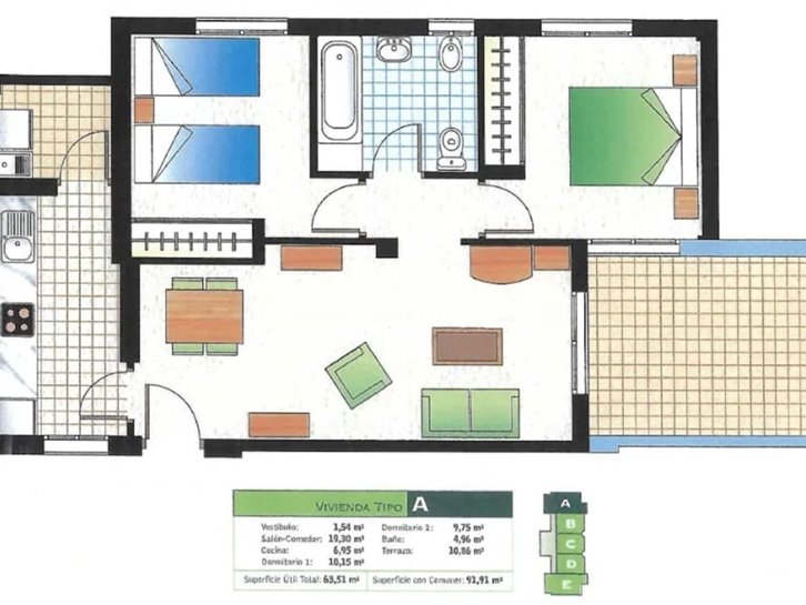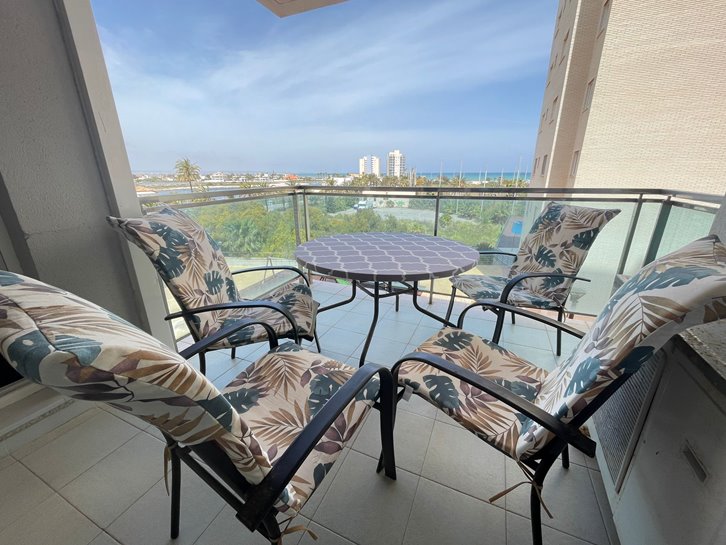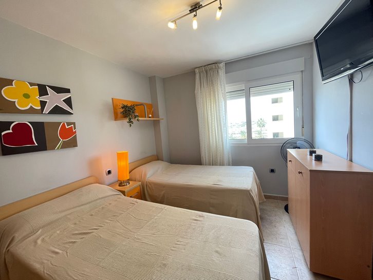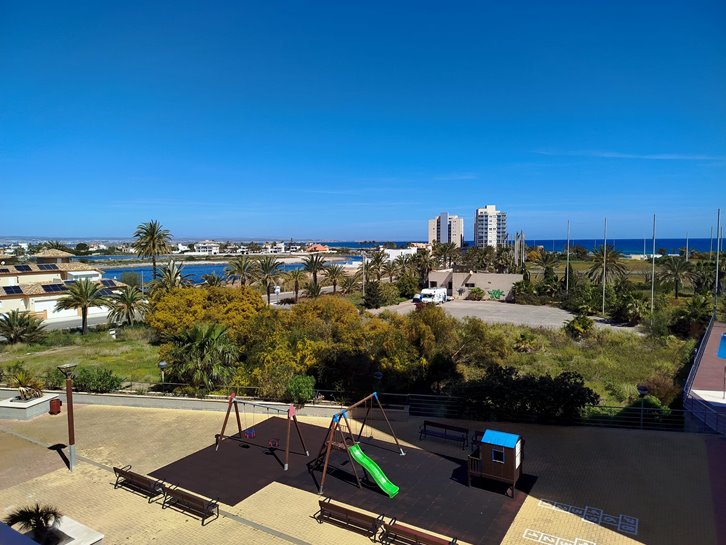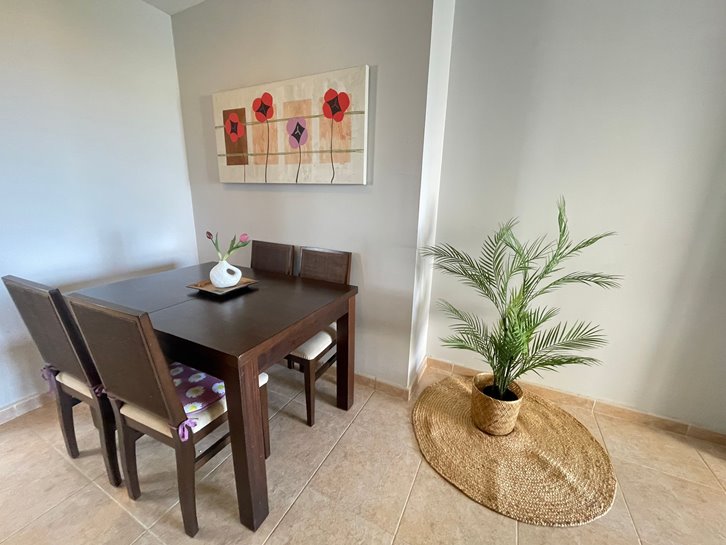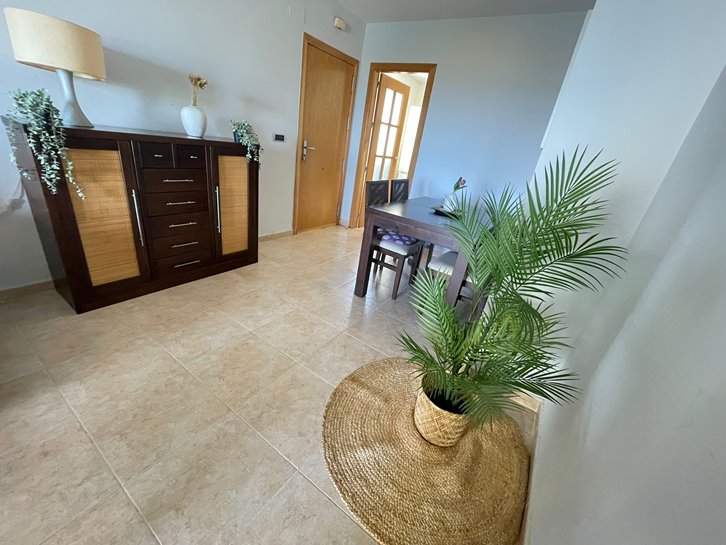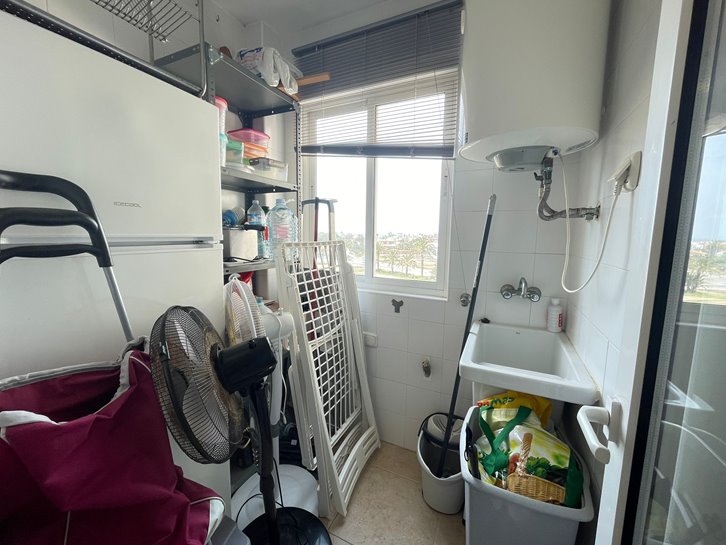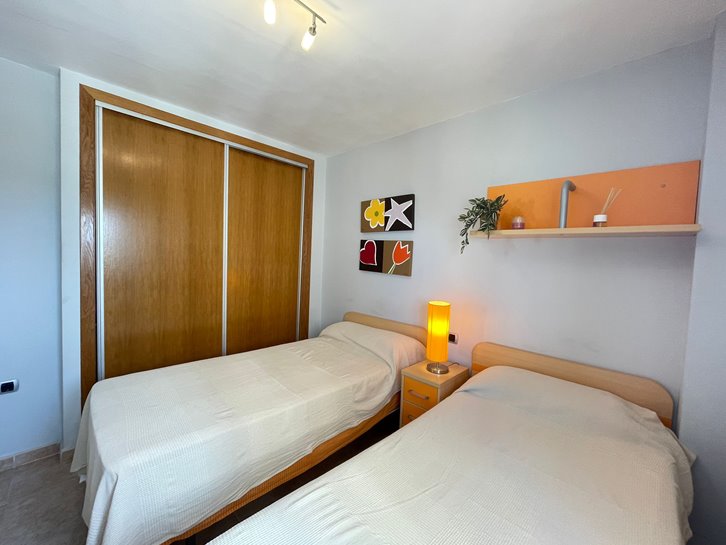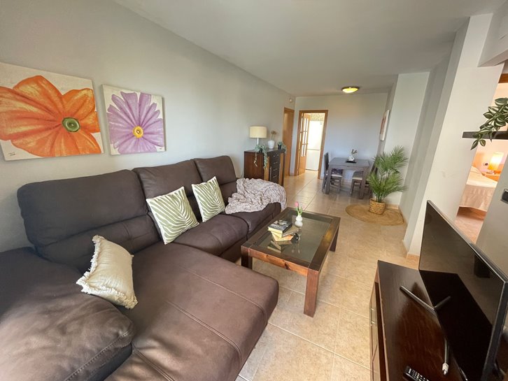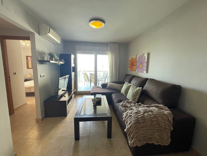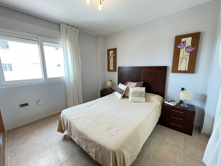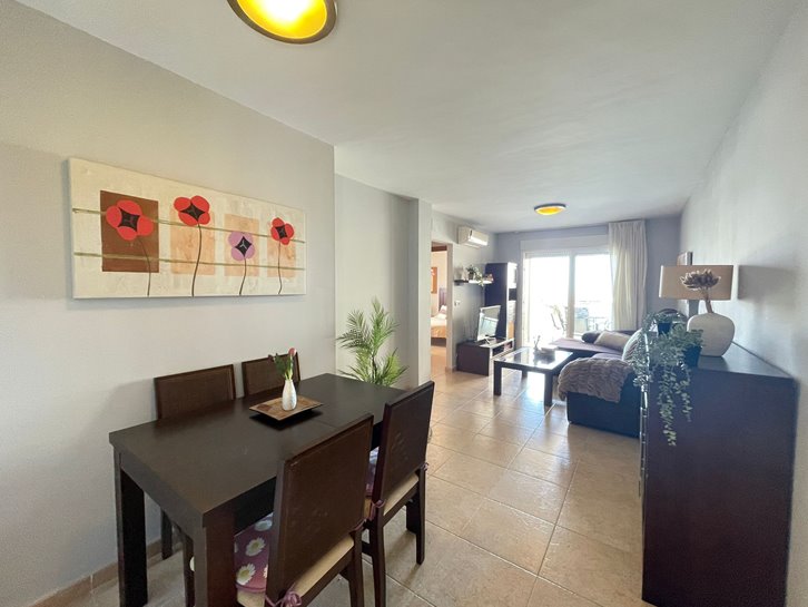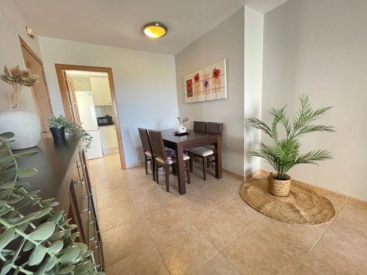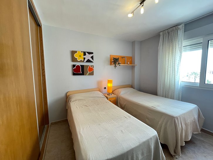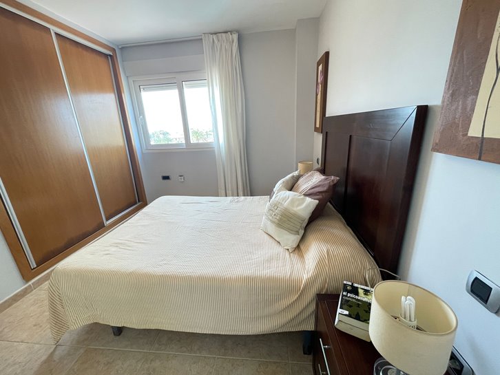 ​H​ermoso apartamento con vistas a los 2 mares y al campo de golf. Consta de 2 dormitorios, 1 baño​ reformado con plato de ducha, cocina independiente y lavadero acristalado. Tiene un gran salón comedor y ​a​mplia terraza​ con bonitas vistas. ​E​stá completamente amueblado, equipado y tiene aire​ acondicionado​. Variedad de comercios en la zona, piscina y pista de paddel comunitarios.​ Plaza de parking en superficie Nº 2​15.