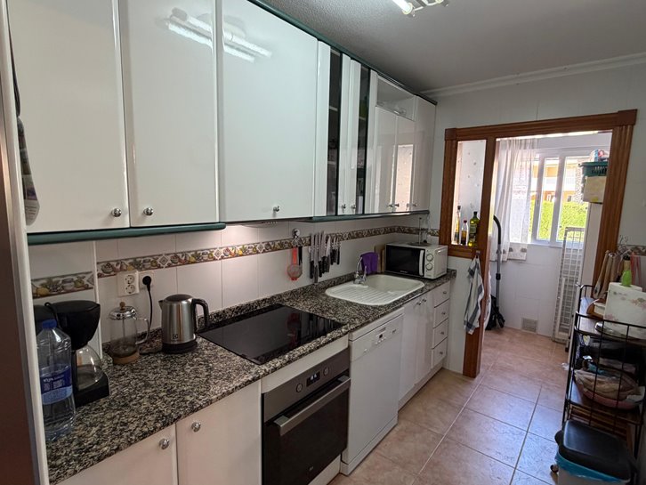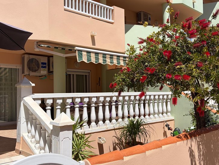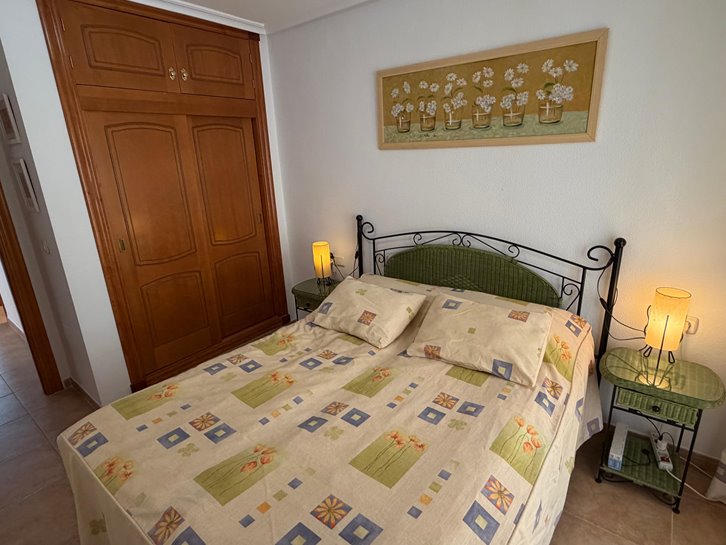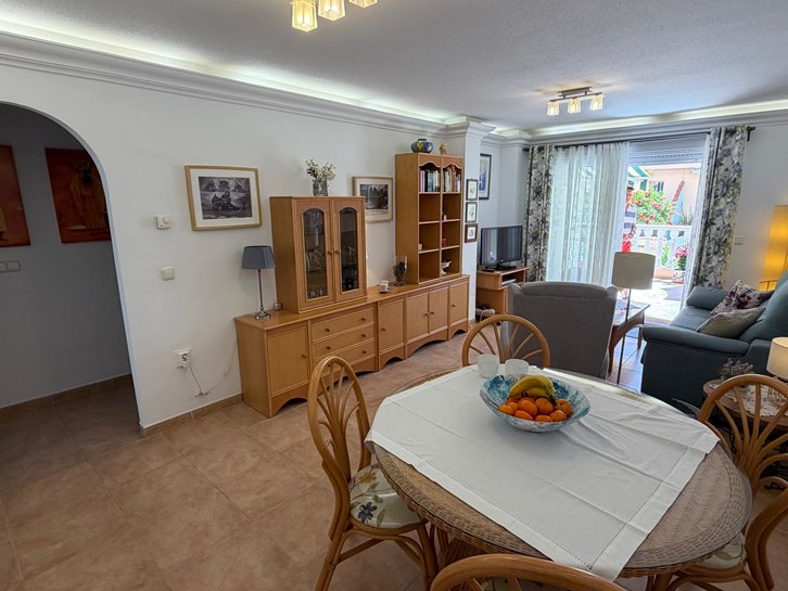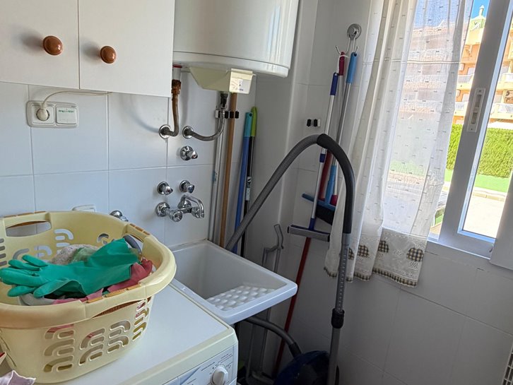 Beautiful ground floor apartment with a large terrace and garden. It has two bedrooms, a renovated bathroom with a shower, a separate kitchen with a utility room, and a comfortable living/dining room. It is sold fully furnished and equipped, and includes air conditioning and underfloor heating. The complex is located next to the Mar Menor, with a wide variety of shops nearby and a communal swimming pool. Garage space number 7 is located in the basement.