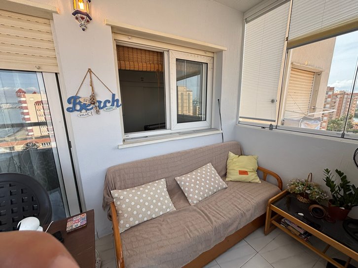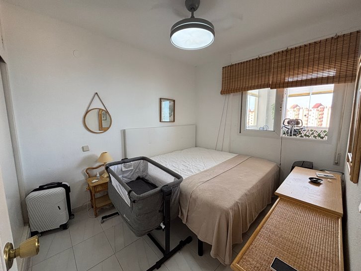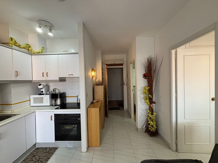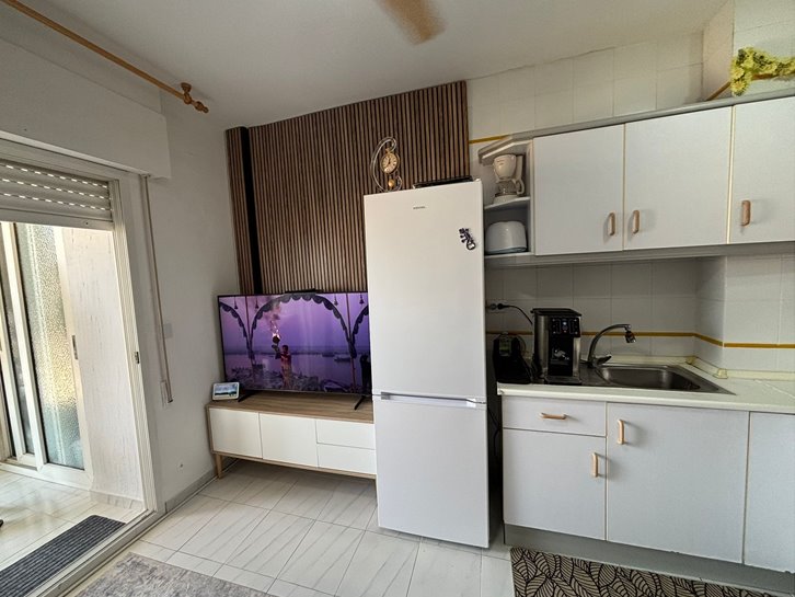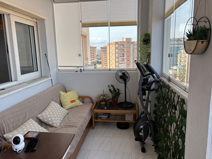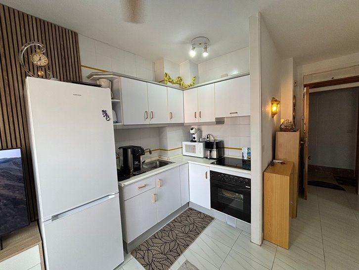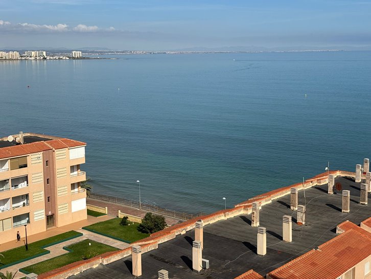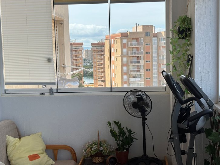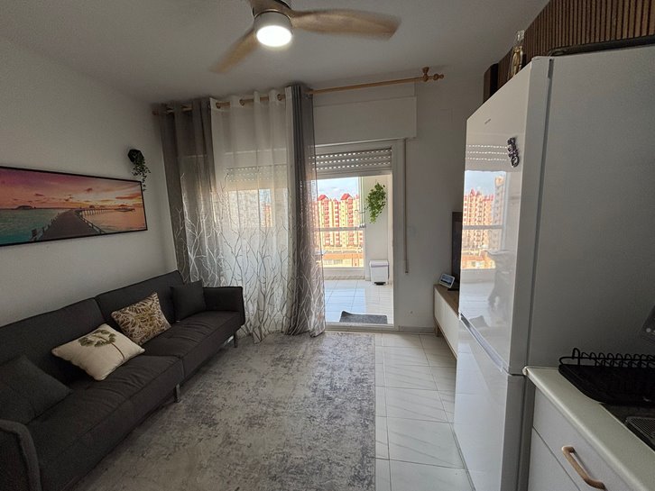 Comfortable apartment with an entrance hall, one bedroom, one bathroom, an open-plan kitchen, and a living/dining room. It features a spacious enclosed terrace with views of both seas, perfect for enjoying magnificent sunsets. Sold fully furnished, it includes ceiling fans and air conditioning. It also has a home automation system for controlling lighting and other household elements. The development is located in a commercial area, next to the wide Mediterranean beaches and the long coastal promenade. There is a communal area with a swimming pool and surface parking.