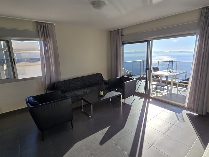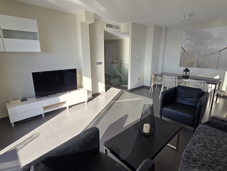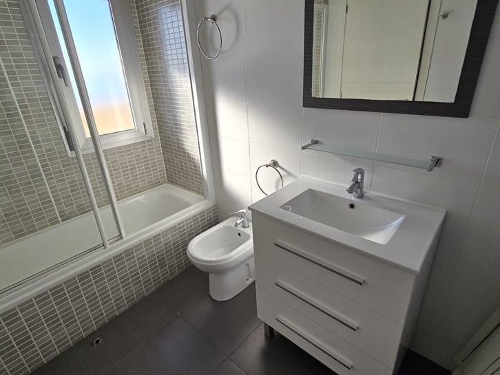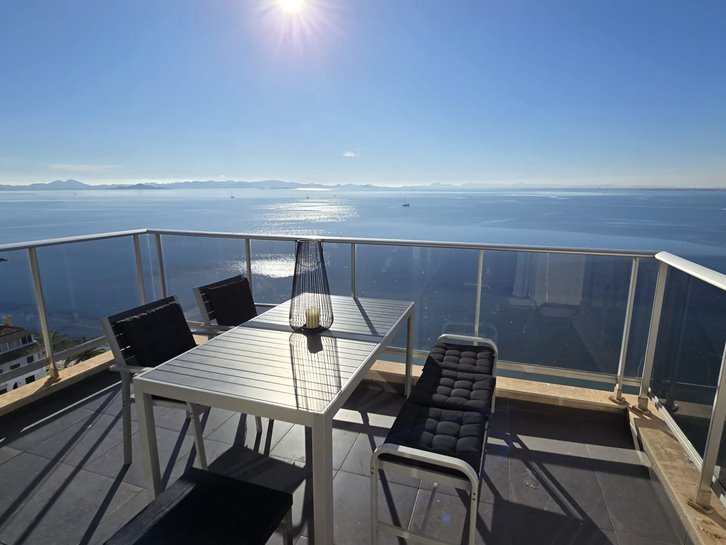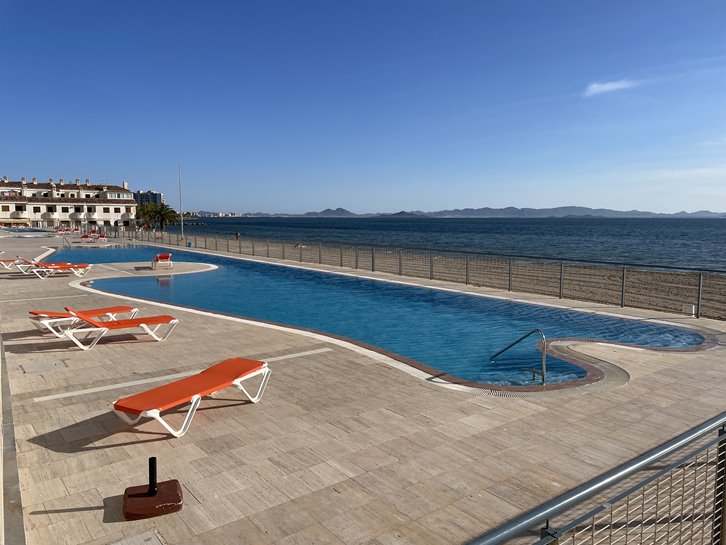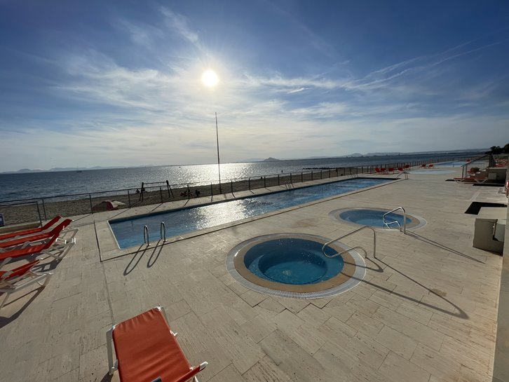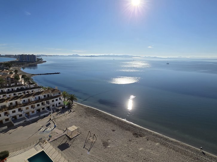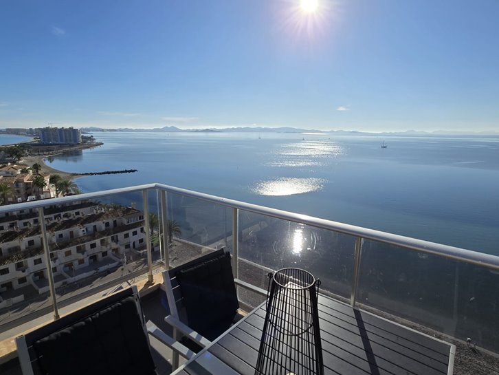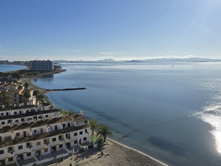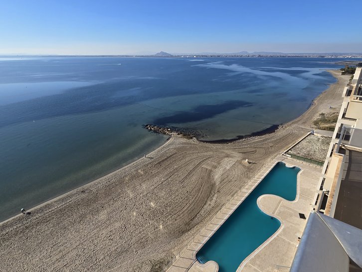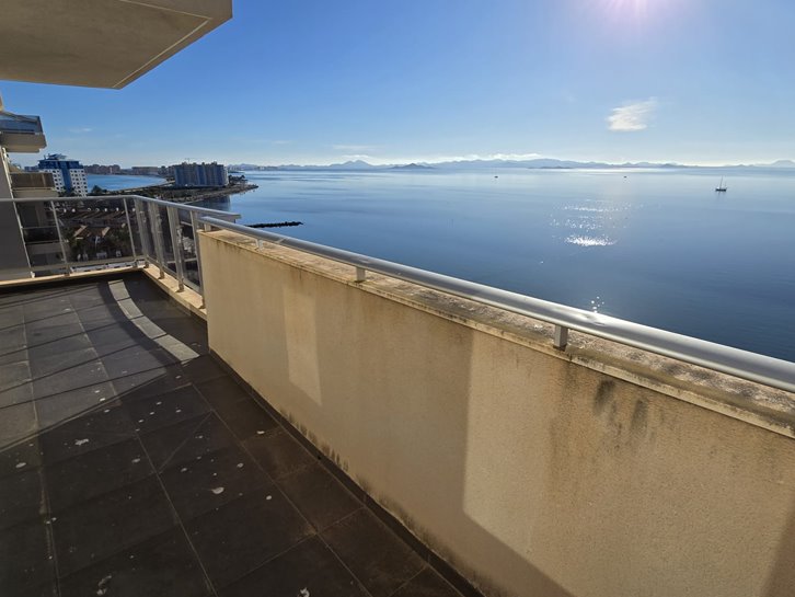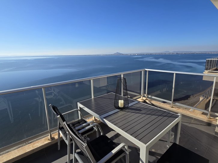 MAGNIFICENT PENTHOUSE with a large terrace and fabulous views of the Mar Menor. It features 3 bedrooms, 3 bathrooms, a living-dining room, and a separate kitchen. It is sold fully furnished and equipped, with central air conditioning and underfloor heating in the living room. The communal area includes an Olympic-size swimming pool, 2 jacuzzis, a children's pool, and a tropical pool, all located near the beautiful beaches of Veneciola. Parking space No. 80 and storage room No. 9, both in the basement. KILÓMETRO 17 VENEZIOLA.