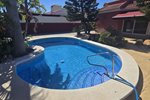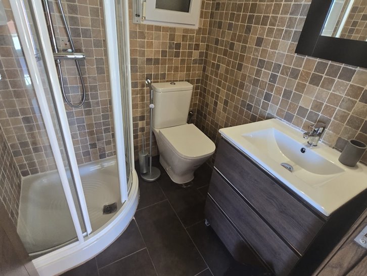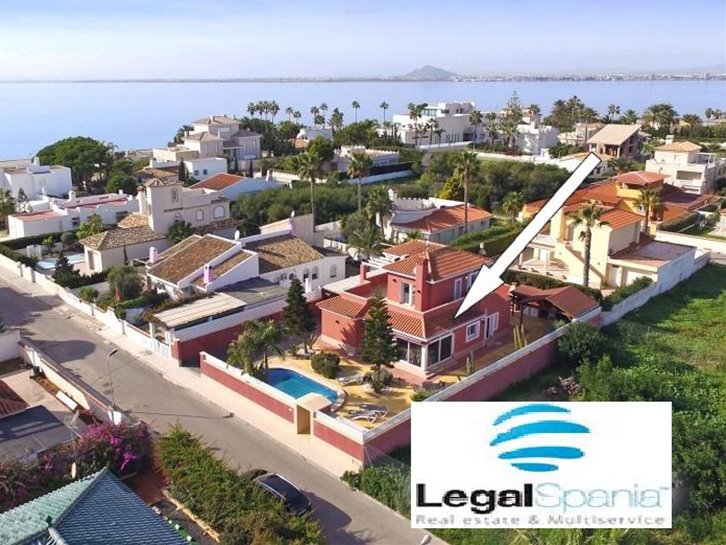 Storslått frittliggende villa på en tomt på 600 kvadratmeter med svømmebasseng, hage og pergola med grillplass. Den har 3 soverom og 3 bad og er bygget over 2 etasjer. I første etasje er det 2 soverom med 2 bad, et separat kjøkken, en romslig stue-spisestue med peis og en innglasset terrasse. Ovenpå er det et studio med uavhengig tilgang med 1 soverom, et bad, et åpent kjøkken, en stue-spisestue og en romslig takterrasse. Den selges fullt møblert og utstyrt, og har klimaanlegg og gulvvarme.